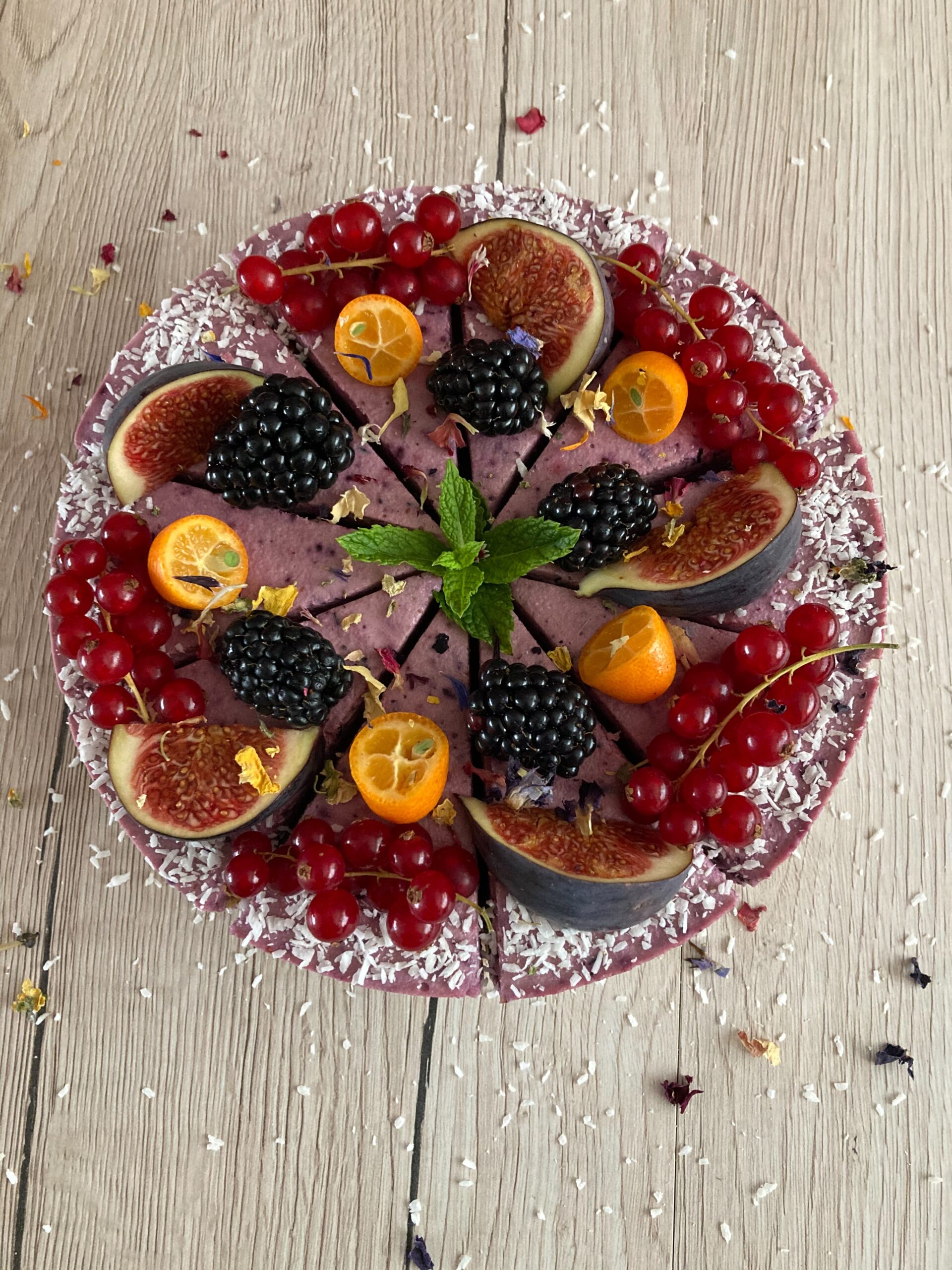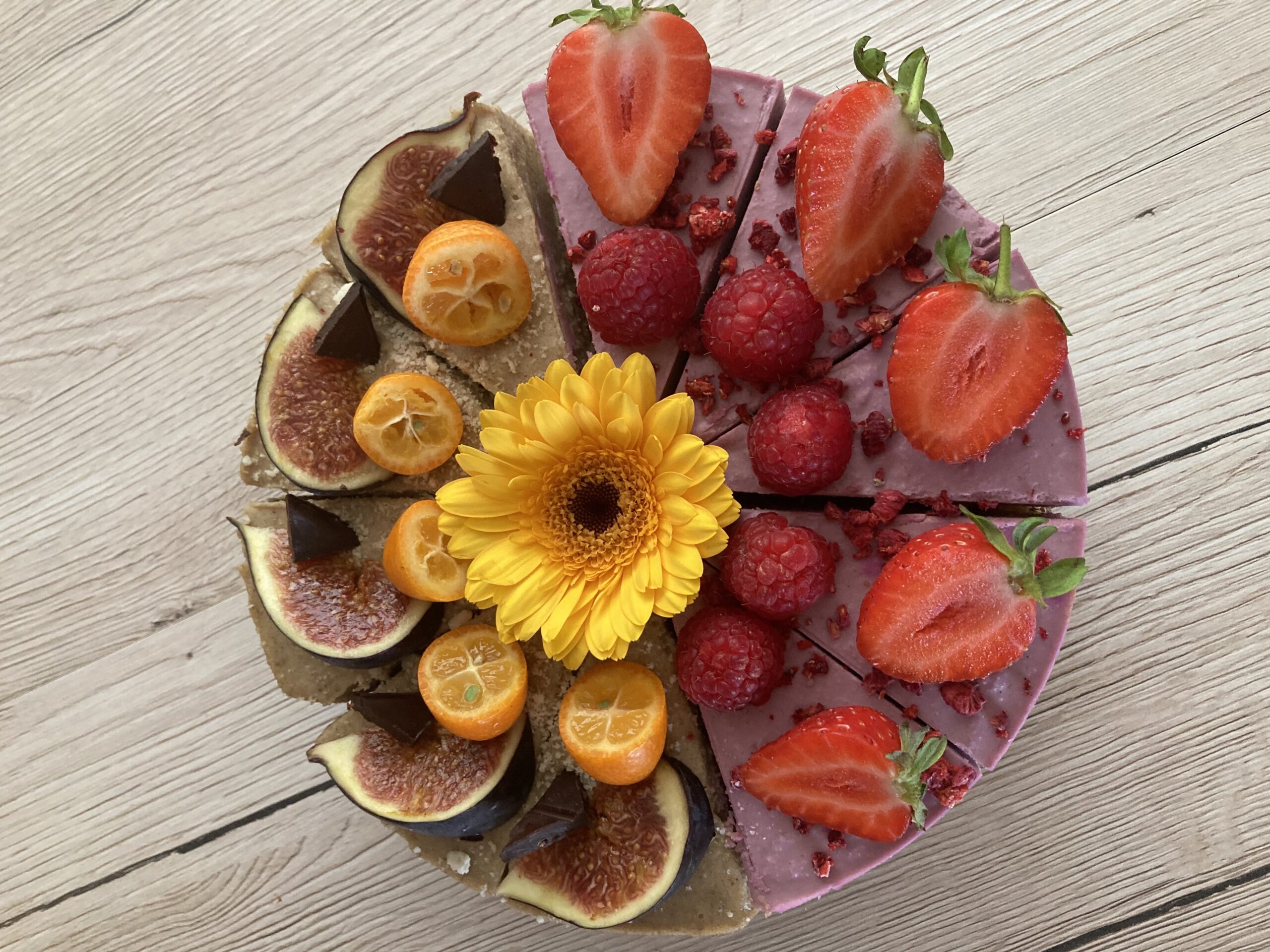 A visual and tasty explosion: Our delicious and healthy 10″ mixed cakes. As always, organic, raw, and vegan.